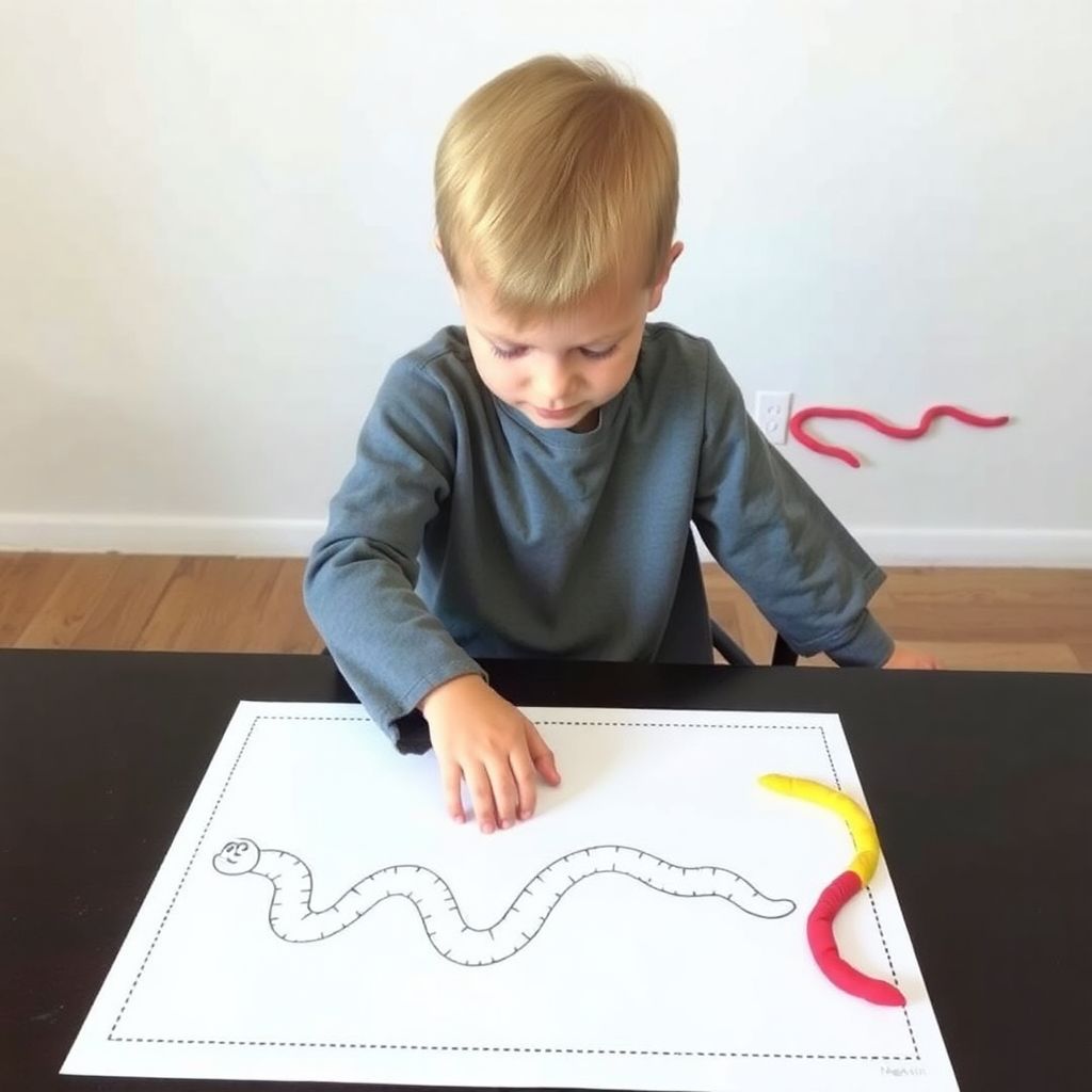 1. Начальный уровень — толстые линии, крупные формы, минимум деталей. Ребёнок учится катать и выкладывать «колбаски» по линии.